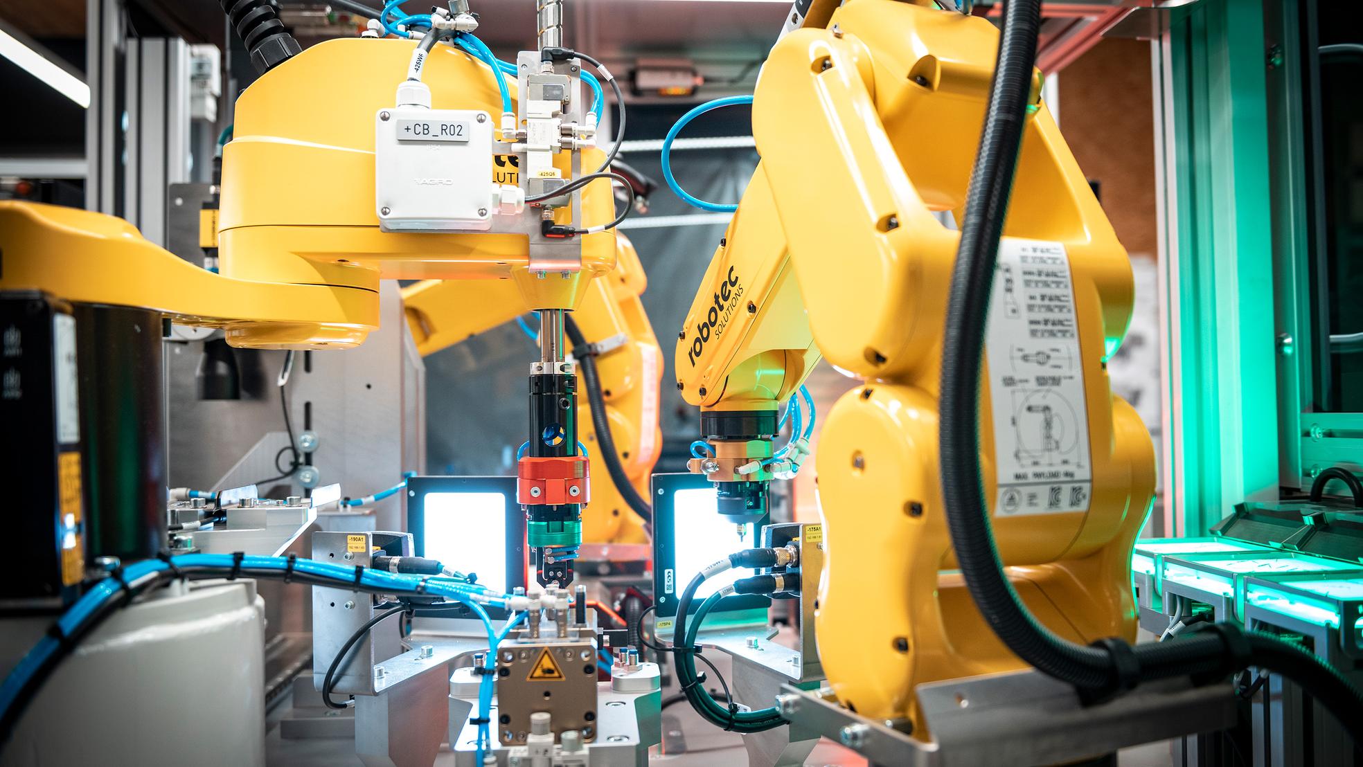 Nach einer Analyse der vielschichtigen Bedürfnisse entwickelten wir eine individuelle State-of-the-art Roboterzelle . Die neue roboterbasierte Montageanlage verfügt über Eigenbau-Robotec-Feeder und Vision-Systeme mit sieben Kameras, während Hochpräzisionsachsen für höchste Genauigkeit sorgen.