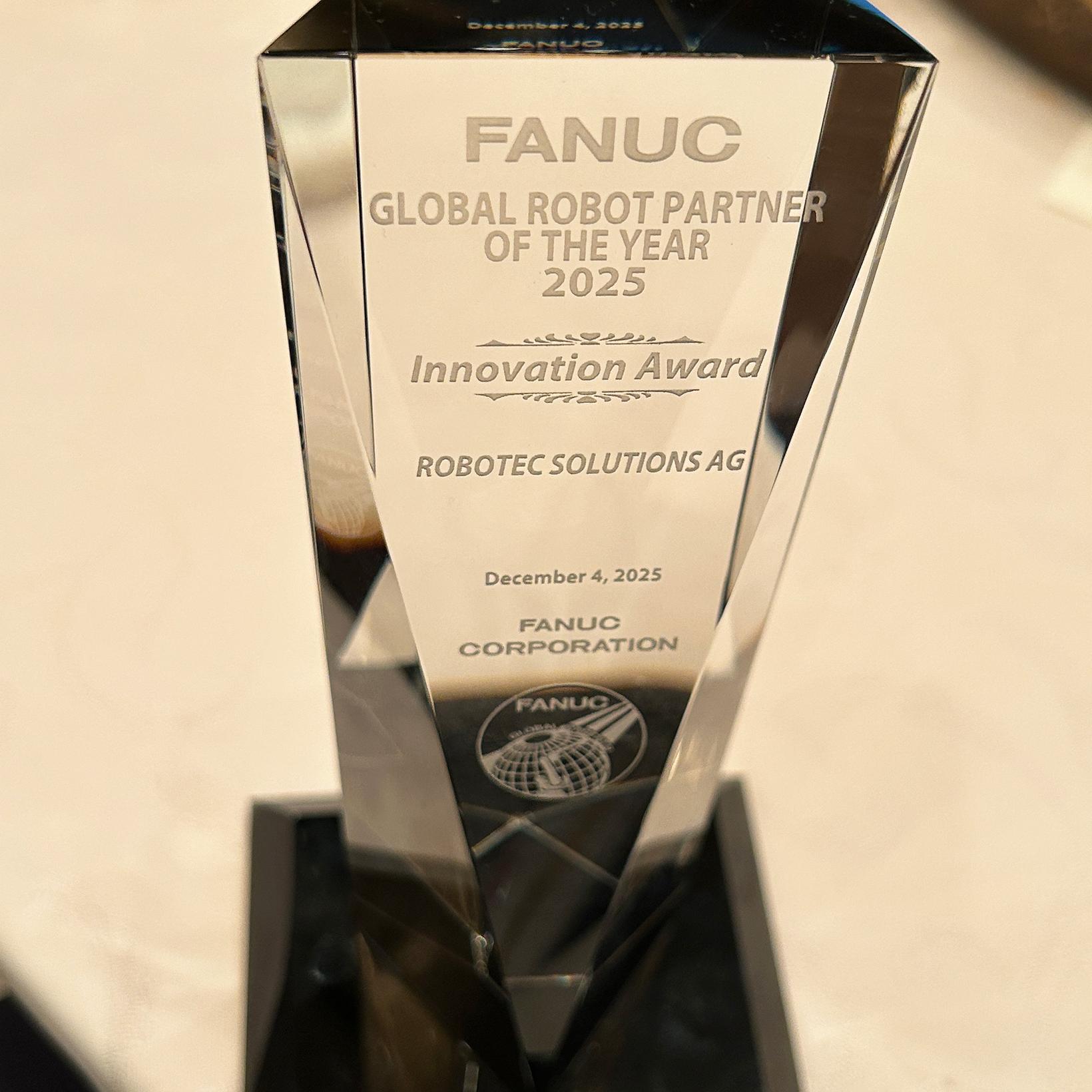 Eine Auszeichnung, die uns doppelt stolz macht: Sie bestätigt unseren Innovationsgeist, der uns seit der Robotec-Gründung antreibt. Und sie ehrt unsere enge Partnerschaft mit FANUC, die seit 1997 besteht.